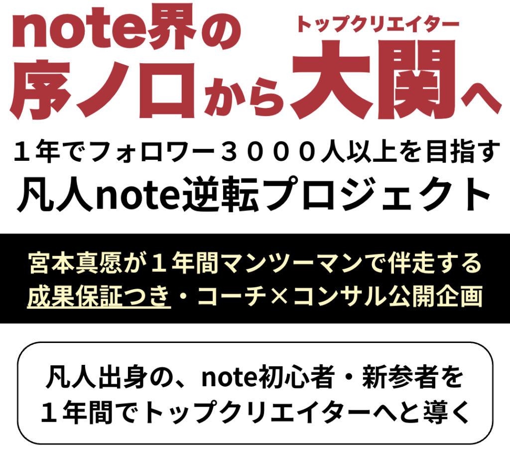この凡人note逆転プロジェクトでは、1年以内にフォロワー3000人…