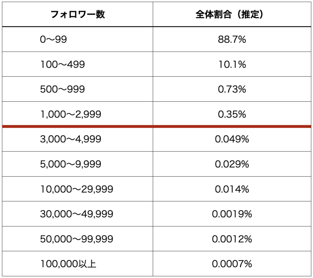 フォロワー3000人以上になると、発信者の数は一気に少なくなります。
